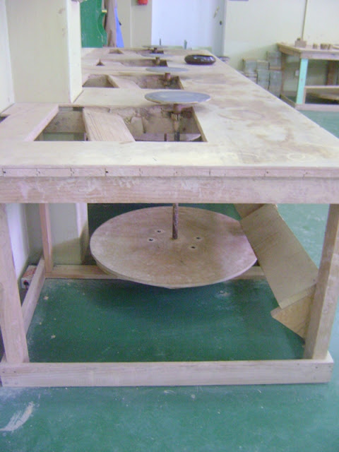 aquí se ve, en primer plano, un "puesto de trabajo", enseñanza en este caso
